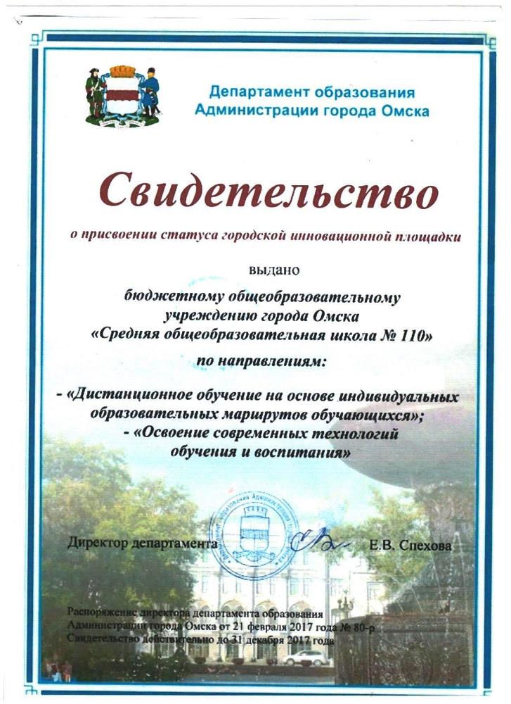 БОУ г. Омска «Средняя общеобразовательная школа № 110» присвоен статус городской инновационной площадки по направлению: